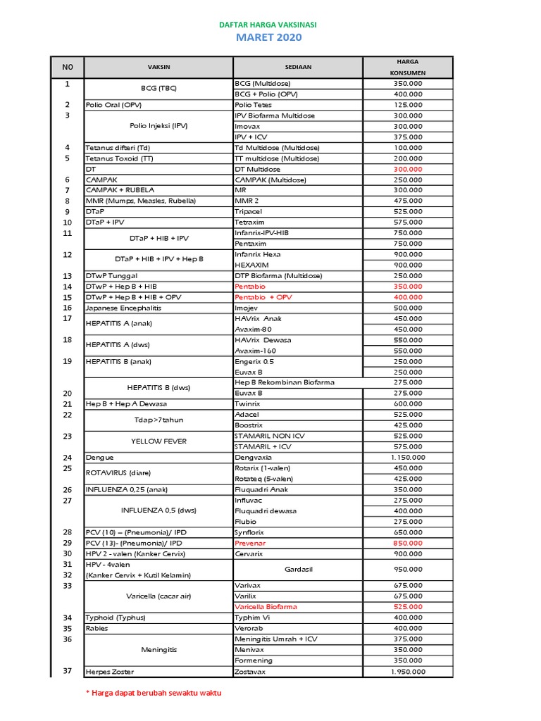 Biaya Vaksinasi Tahun 2021 Untuk Bayi Usia 0 3 Tahun